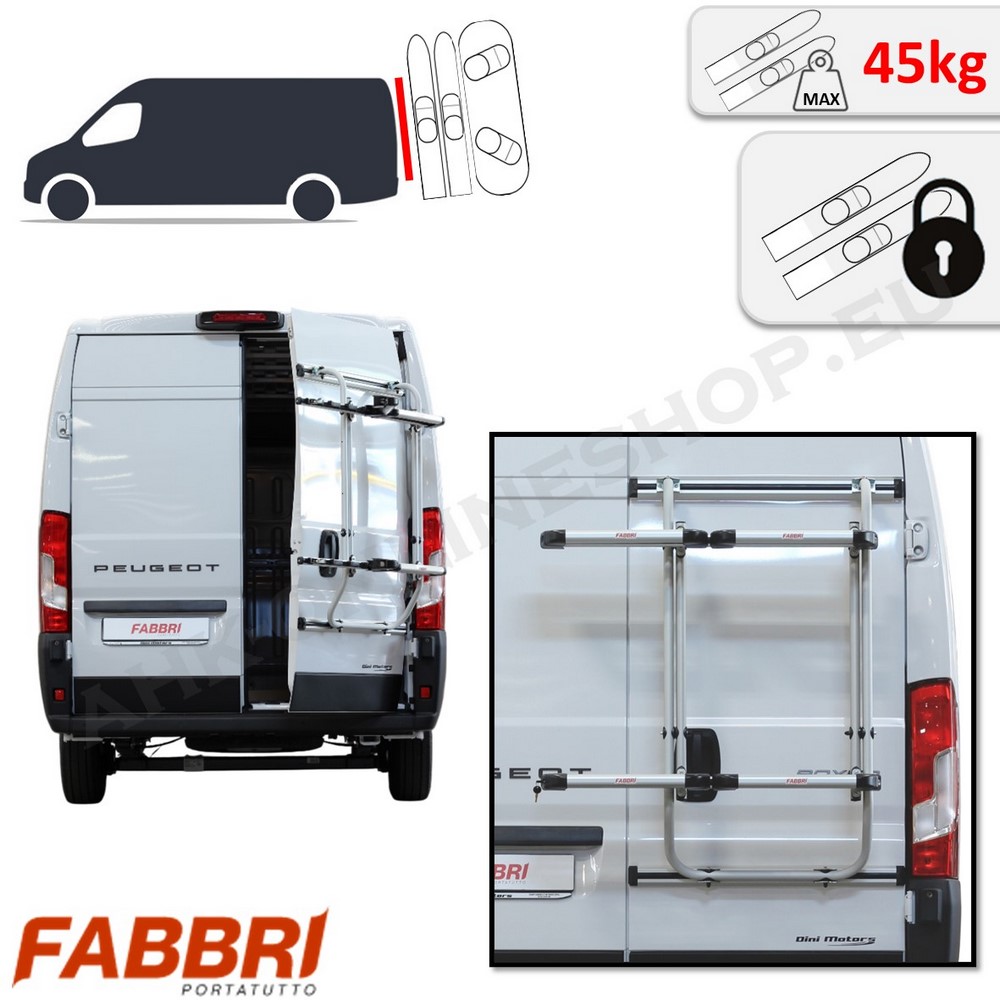 Portasci Van, Fabbri Skiträger Ducato, Fahrradträger Fiat Ducato, Heckträger Kastenwagen, Ski Snowboard Träger Van, Fabbri 6201710, Ducato 250 Zubehör, eBike Träger Van